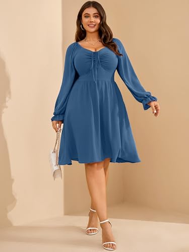 RWJ Women Plus Size Long Sleeve Dress Fall Mini Wedding Guest Tie Front Sweetheart Neck A-Line Casual Dresses 2025