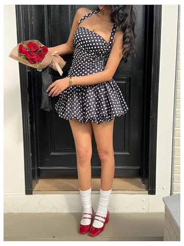 SOLY HUX Women's Polka Dots Bubble Mini Dress Halter Backless Sleeveless Ruched Party Going Out Dresses