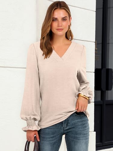 • Features - Women's v neck dressy casual shirts, puff long sleeve design. This Long Sleeve Shirts for women is impeccable for everyday wear, work, daily activities, casual outings and parties.