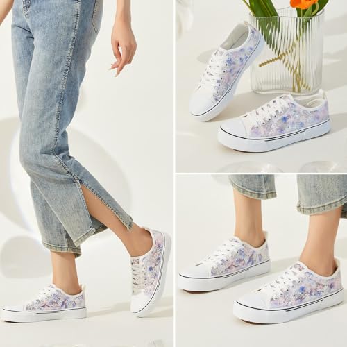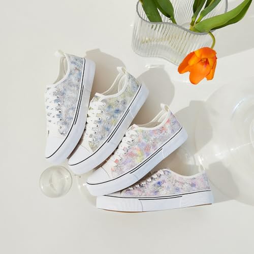 kufeiti Women's White Tennis Shoes Embroidered Sequins Low Top Canvas Shoes pleasant Casual Fashion Sneakers
