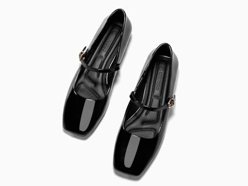 Coutgo Women's Mary Jane Flats Closed Square Toe Ballet Flat Dressy pleasant Slip on Shoes, Black, Size 8.5
