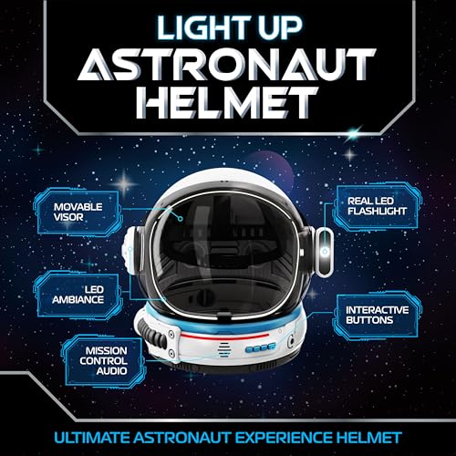 Astronaut Helmet for Kids & Adults – Halloween Kids Space Helmet with LED Lights, Movable Visor & Mission Sounds – NASA Halloween Costume & Role Play Dress Up (Helmet Only)