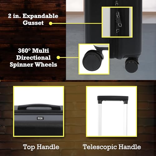 FUL Yellowstone 22.5 Inch Carry On Luggage, Dutton Ranch Hardshell Rolling Suitcase with Spinner Wheels, Black