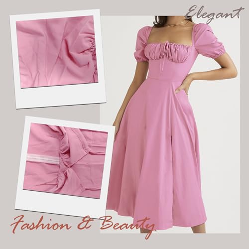 Fabric type: 95% Polyester, 5% SpandexCare instructions: Machine WashOrigin: ImportedClosure type: Pull On【French Elegance Design】 iconic puffed sleeves paired with tie design, retro and romantic; The high waistline cut and side slit skirt hem elongate the leg proportion, making it suitable for both commuting and dating.It easily creates the laid-back and refined look of a Parisian girl.【Comfortable Workplace Fabric】 Made of a blend of 95% polyester and 5% spandex, it is smooth and not prone to wrinkling, breathable and skin-friendly, with moderate elasticity. it won't feel tight.Even after sitting in the office for a long time, refreshing and not stuffy to wear in summer.【Slimming detail Cut】 The hidden zipper on the back makes it easy to put on and take off, and the adjustable tie accentuates the waistline. The A-line skirt with moderate side slits reveals an elegant leg shape when walking, concealing the flesh and making one look slimmer.【Practical Outfits for Multiple Scenarios】On weekdays, pair it with a suit jacket for a neat and intellectual look.On weekends, wear it alone with a straw woven bag for a vacation vibe. This one item meets various needs such as workplace meetings, afternoon tea dates, and travel photos.Recommended pairings: strappy sandals + chain bag (for commuting), woven hat + mules (for casual wear).【Convenient Care】 Anti-wrinkle treatment.It won't deform after machine washing and can regain its crisp shape after hanging and drying. The no-ironing design saves time.It is a cost-effective item that is essential for urban women's wardrobes. Perfect for everyday use. first-class materials and excellent craftsmanship ensure long-lasting durability.