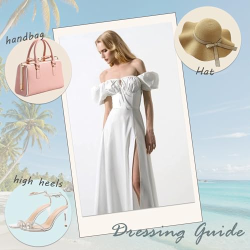 Women's Summer Commuter Maxi Dress, 2025 French Style Temperament Puff Sleeve Lacing Waist Slit Skirt Long Dress