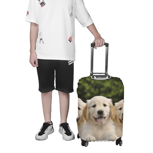 Luggage Covers: Our Golden Retriever Puppies luggage covers protect your luggage from dust and scratches. The chic patterned design also helps you spot your belongings amidst a cluttered luggage.Material: The luggage covers are made of highly stretchy polyester fabric, which is stretchy, durable, and wear-resistant. They're washable and easy to care for.Easy to Install and Remove: The top features two openings for the telescopic handle and carry handle, and zippers on both sides. The unique design makes it easy to install and remove.Size : 4 sizes available to fit almost any luggage. SIZE S: fit 19-21 inch luggage; SIZE M: fit 22-24 inch luggage; SIZE L: fit 26-28 inch luggage; SIZE XL: fit 30-32 inch luggage.Note: 1. We only sell luggage covers; we don't sell regular suitcases. 2. The height of the luggage cover does not include the wheels, and the width does not include the handles. We recommend measuring your luggage at the maximum of this size and ordering the next size up. Perfect for everyday use. first-class materials and excellent craftsmanship ensure long-lasting durability.