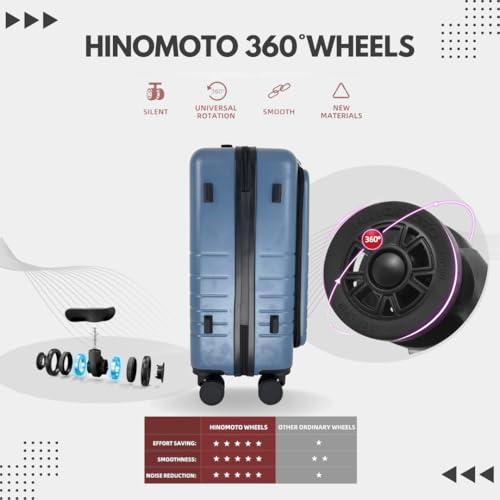 Why Choose 20-Inch Hardside Carry-On Luggage with Spinner Wheels – Airline Approved 22x14x9 Travel Suitcase with USB Port, Front Laptop Pocket & TSA Lock (Blue-Grey)?