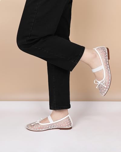 Sole material: RubberOuter material: MicrofiberClosure type: Pull-On【Comfortable Flats】Heel measures approximately 1 CM. Classic slip on ballet flats shoes provide you a comfortable and gentle fit, offering every step stable and elegant.【Classic Flat Shoes 】 Lightweight and sturdy sole with their contemporary slip on design, these flats are always classic.【Occasions】 Featuring a round toe, rhinestone embellishment, stretch band mary jane style, bowknow and mesh material, they are easy to take on and off, putting a perfect finish on any outfit for Wedding, Date, Cocktail, Nightclub, Homecoming, Party Event, Office Work, Bridal , Prom or other special occasions.【Comfort & Quality】 Manufactured with superior materials and stitched with precision allowing for strong and robust inseams. Soft and breathable lining with non-slip sturdy sole bring all-day comfort and safety.【Customer Service】Eldof provides out standing customer service. We promise careful packing and we use good workmanship and apply strict examination to ensure the shoes you receive will be fashionable and high-quality. Perfect for everyday use. High quality materials and excellent craftsmanship ensure long-lasting durability.