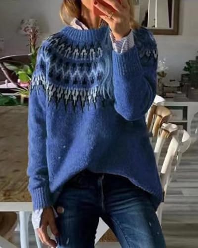 in-demand ! Womens Fair Isle Sweaters Vintage Argyle Iceland Norway Sweater Colorful Crew Neck Long Sleeve Pullover Jumper Tops