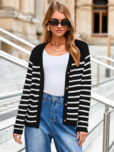 in-demand ! Glamaker Womens Striped Cardigan Sweaters Long Sleeve Button Open Front Knit Cardigans Lightweight Fall Sweater Trendy 2025