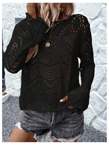 Why Choose Women's Crochet Sweater Hollow Out Lightweight Sweaters Crew Neck Long Sleeve Casual Pullover Knit Top?