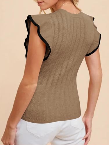 Fabric type: 45%viscose,30%nylon,25%polyesterCare instructions: Hand Wash OnlyOrigin: ImportedClosure type: Pull OnVERSATILE&COMFY - Made from soft, breathable fabric, this ruffle cap sleeve tops for women is lightweight. It comfortable nicely and providing both chic and style. The cute tops for women come in a variety of styles that let you find the perfect lookELEVATE YOUR STYLE - This summer sweater vest for women casual, stretchy ribbed hemline, crewneck, ruffles on the shoulders contrast with the color of the vest, cable knit and regular fit make this pullover sweater a must-have for any fashion-forward woman. The cap sleeve design is perfect for summerSTYLISHI&PRACTICAL - The slim fit shape design adds a touch of sexy style to your outfit, while the neckline design looks chic without being too revealing. Pair it with skinny jeans, leggings, or skirts for a fashionable and comfortable lookOCCASION - Whether you're heading to the office, running errands, or going out with friends, our knit tops for women summer is the perfect choice. It's great for any occasion, from casual to dressyEASY CARE - Keep extra cozy with this knitwear. The short sleeve sweater for women streetwear are easy to care for and it is machine washable with a laundry bag, do not iron, do not bleach, hang or line dry for best results Perfect for everyday use. superior materials and excellent craftsmanship ensure long-lasting durability.