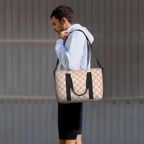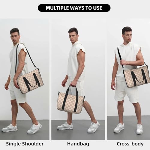 More information about Travel Duffle Bags For Women Men - Beige Checker Print Personal Item Weekender Overnight Gym Carry On Airport Tote Bag With Strap For Yoga, Travel, Business Trips