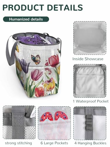 More information about Mesh Beach Bag Oversized Tote Bags for Women Butterfly Spring Flower Gradient Large Travel Pool Bags with 8 Pockets