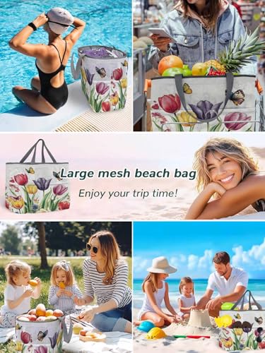 in-demand ! Mesh Beach Bag Oversized Tote Bags for Women Butterfly Spring Flower Gradient Large Travel Pool Bags with 8 Pockets