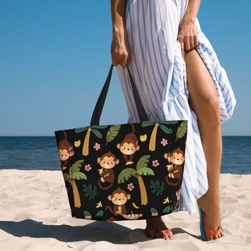 in-demand ! Monkeys Swinging from Palms Print Large Beach Tote Bag for Women Extra Large Capacity Sandproof Waterproof Pool Bag Suitable for Swimming Pool Gym Groceries Travel