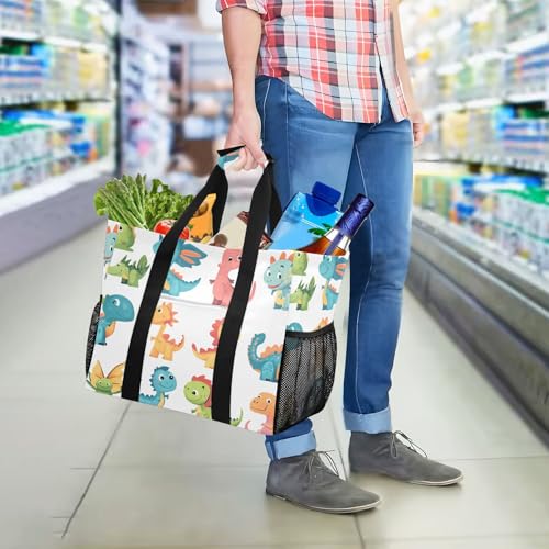 STAYTOP Cartoon Dinosaur Large Beach Bags for Women & Men,Waterproof Sandproof Beach Tote Swim Pool Bag for Pool Gym Grocery Travel