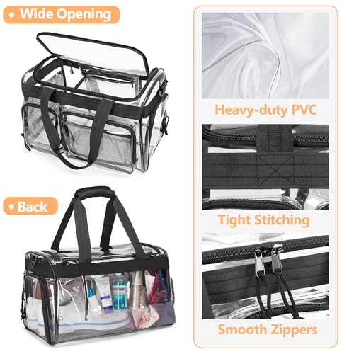 YARWO Large Clear Gym Bag with Shoes Compartment, Stadium Approved PVC Duffle Bag with Multiple Pockets and Shoulder Strap, Waterproof Carry On Tote for Travel, Sports, Overnight, School, Work