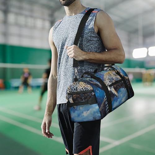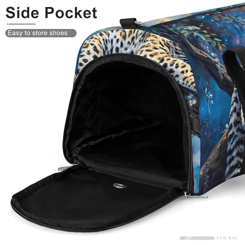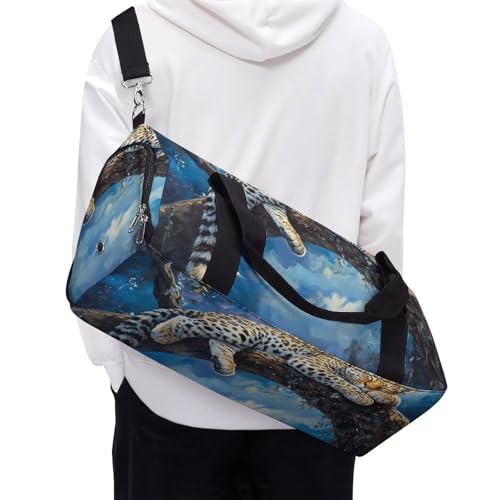 Leopard Sleeping On Tree Branch Gym Sport Bag Travel Duffel Bags Tote with Shoe Compartment Water Resistant Pouch Unisex