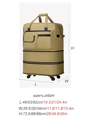 Detachable Spinner Wheels for Easy Mobility: This rolling duffle bag features four detachable bottom wheels for effortless rolling and convenient switching to handheld or shoulder carry. impeccable for travel, gym, or hospital useConvenient Wet and Dry Separation: Includes a dedicated compartment to keep wet and dry items separate. Perfect for workout gear, toiletries, or keeping your clean clothes freshExpandable and Foldable Design: Adjusts to your packing needs with an expandable section for extra storage. Foldable for compact storage when not in use, making it an carry-on bagWater-Resistant Fabric: Made with upgraded prevent-scratch and tear-resistant fabric, this expandable duffle bag resists wear and keeps your belongings dry during your trips. For outdoor adventures or business travelLarge Capacity for Extended Trips: Designed with a spacious interior, this travel duffle bag can hold up to a week’s worth of essentials. Suitable for short vacations, hospital stays, or gym sessions Perfect for everyday use. first-class materials and excellent craftsmanship ensure long-lasting durability.