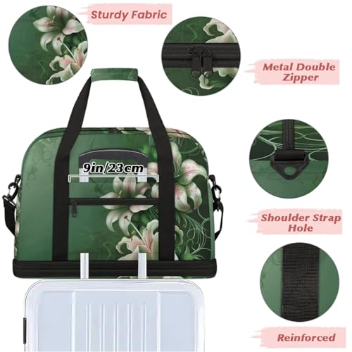 Large Weekender Overnight Bags Green Floral Flower Travel Duffel Bag for Women Men Gym Bag With Shoe Compartment Foldie Travel Tote Bag Carry On Personal Item Bag for Travel Gym Sports