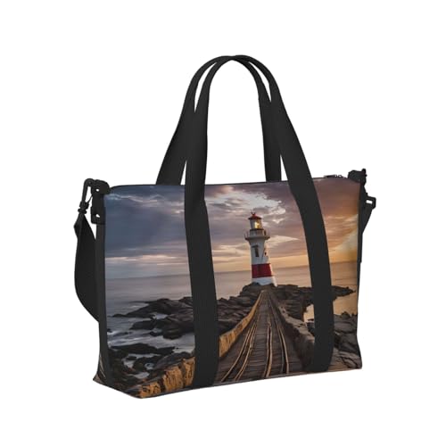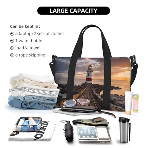 Lighthouse Print Large Travel Duffel Bag Foldable Lightweight Weekender Bags, Carry On Overnight Tote Bags, Gym Duffel Bags Hospital Bags Yoga Bags For Women Men