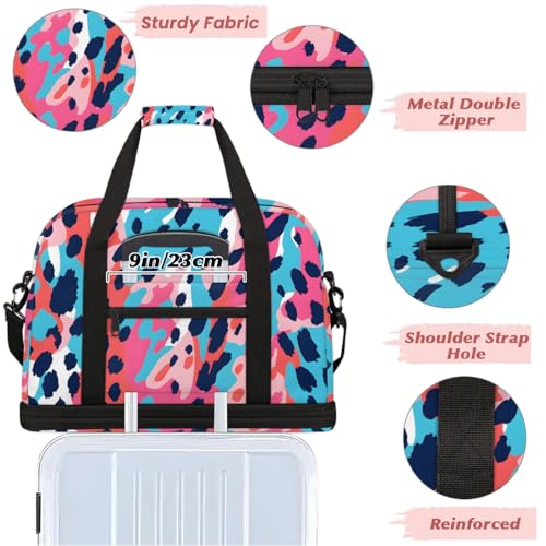 Large Travel Duffel Bag for Women Men Colorful Leopard Print Gym Bag Weekender Overnight Bags With Shoe Compartment Foldie Travel Tote Bag Carry On Personal Item Bag for Travel Gym Sports