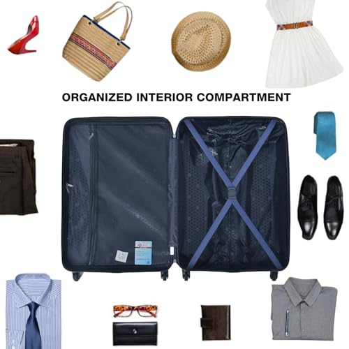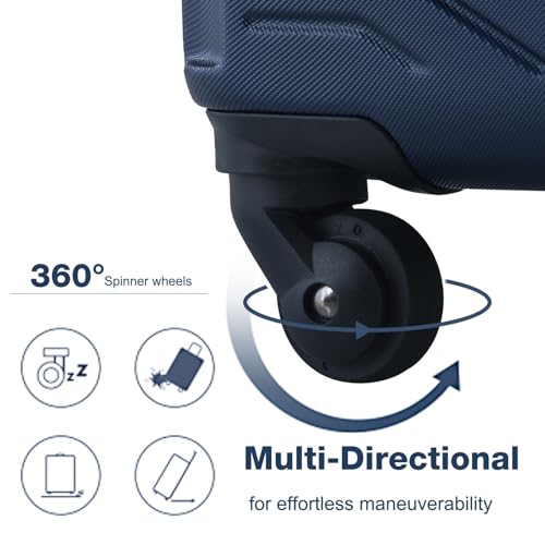 in-demand ! Navy 3 Piece Lightweight Luggage Set - ABS Hard Shell Suitcases with Lock and Smooth Wheels (20/24/28 inches)