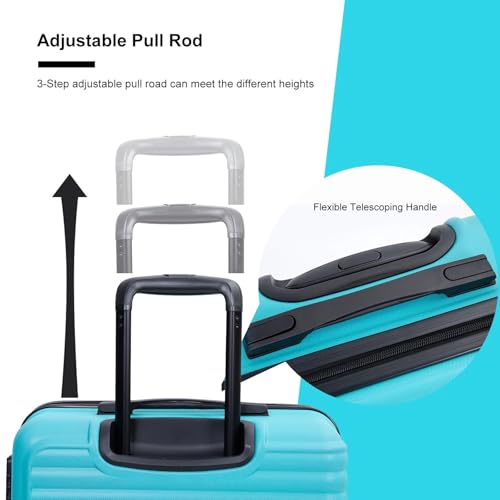 More information about 3-Piece Luggage Set (20" / 24" / 28"), ABS long-lasting & Lightweight Suitcase with 360° Spinner Wheels, Two Hooks and TSA Lock, Carry-On & Checked Travel Gear Set (Turquoise)