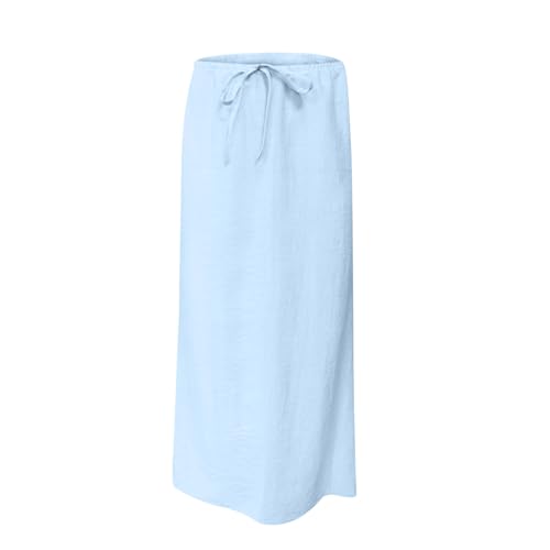 Women's Bohemian Cotton Linen Maxi Skirt Drawstring Summer Cotton Long Wrap Skirts Beach Casual A Line Cover Up