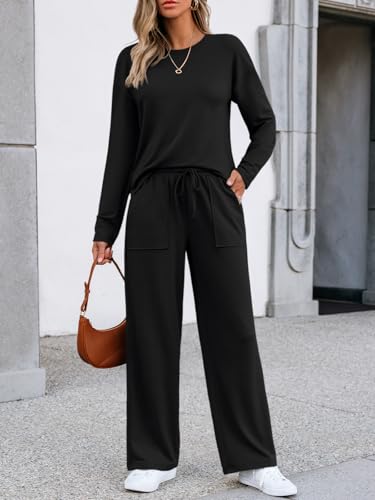 • Design: This womens loungewear set is designed with a retro crew neck long sleeve tops and wide leg drawstring pants. The solid color look and pocket design make it easy to create a simple and sleek personal look for everyday wear.