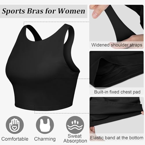 Neck style: High NeckSleeve type: SleevelessFit type: MediumHigh Performance Comfort: The womens sports bras is crafted from high-elasticity, breathable fabric with moisture-wicking technology, giving dryness and comfort during intense workouts; This womens workout bra is lightweight and breathable, giving you long-lasting comfortFixed Pads: This sports bras for women features non-slip padding that stays in place no matter how hard you hustle, so you can focus on crushing your workout, not adjusting your gear; Our high neck sports bra has been designed to widen the shoulders, which can effectively improve the shock-proof effect during exerciseChic Athletic: The yoga sports bra chest line smooth and seamless, can fully modify the outline of the chest; High impact sports bras for women have extended hems to support your chest, showing off attractive curves while also being suitable for yoga, running, and high impact workoutsSupport Magic: Our black sports bra has an elastic band just below the padded cup to not only add extra strength where you need it, but the longline sports bras for women doesn't slide or roll up as easily; Whether you're jumping, sprinting, or just strutting, this running bra will keep you in top shapeVersatile chic: This workout tank tops women combines fashion with high performance; You can wear running bra in yoga, pilates, workouts, and everyday life; Supportive sports bras come in a variety of colors to match your sportswear wardrobe Perfect for everyday use. first-class materials and excellent craftsmanship ensure long-lasting durability.