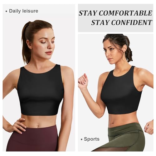 High Neck Longline Sports Bras for Women with Built in Bra Pads U Back Yoga Sports Bra Push up Workout Crop Tank Tops