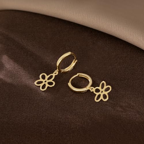 SLUYNZ Solid 925 Sterling Silver Flower Hoop Earrings for Women Teens Hollow Flower Hoop Earrings Huggie