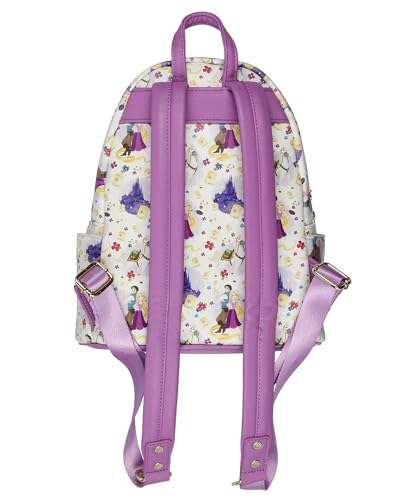 • EVERYTHING A TANGLED FAN COULD WANT FROM A LOUNGEFLY MINI BACKPACK: This Tangled Rapunzel backpack is a charming and functional piece that brings some Disney magic to everyday life. Treat yourself or someone you appreciate to this as a Tangled gift; you will not be disappointed!