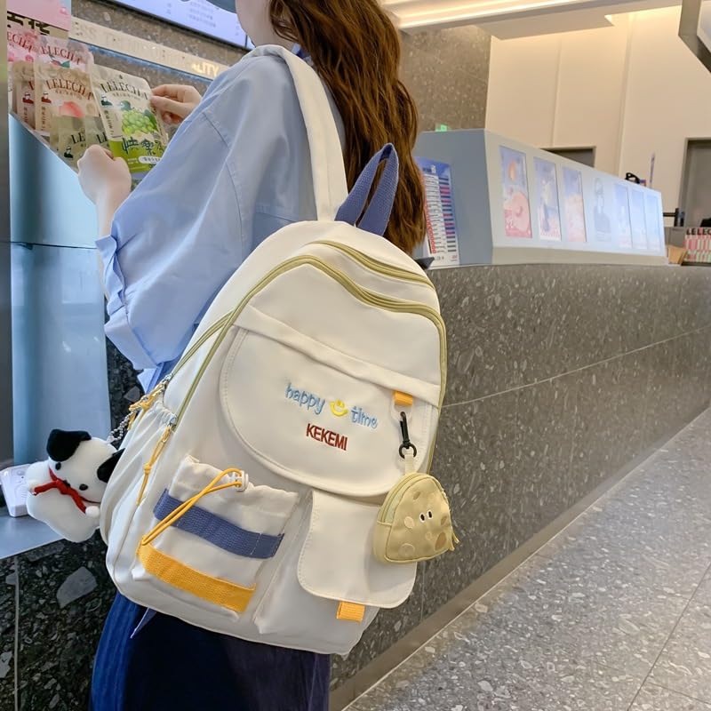 【Material】The cute backpack is made of high-quality nylon, pleasant polyester lining with sturdy metal hardware, wear-resistant, durable, and easy to clean and care for.【Large Capacity】Size:31cm*20cm*44cm/ 12.2inch(L)*7.8inch(W)*17.3inch(H). The storage space of this large daypack is big enough for all your daily belongings. You can easily take your cell phone, pad, laptop, book, wallet, makeup, etc. with you.【Free Accessory Gift】 A free pendent comes with the backpack. It can decorate your backpack more fashionable.【Widely Use】 This cute backpack daypack bag is perfect for daily use, work, gym,sports, travel, luggage, on a business trip, hiking, camping or Cosplay, theme party, anime exhibition and it can be used as a weekend shopping bag, garment bag, overnight bag, travel bag and so on. It's also a kawaii purse thanks to its kawaii color and style.【Perfect Gift】Ideal present for new year, birthday, Christmas, this cute backpack available for all types of occasions for college/daily use, casual daily use, day-trips, sporting, traveling, ect. Perfect for everyday use. first-class materials and excellent craftsmanship ensure long-lasting durability.