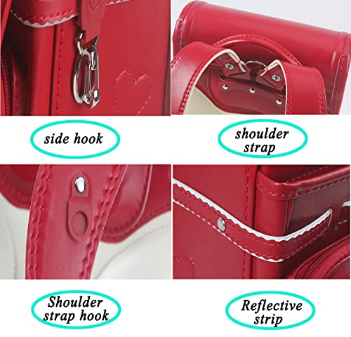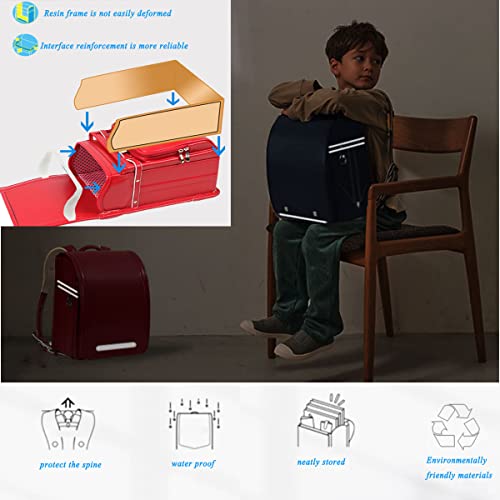 【Main Material&Weight】Material:PU leather,weight about 2.644 lbs.(1200g) Performance and advantages:green/good breathability/anti-stretching/not easy to deform/Rain-Proof and Anti-Scratch.【For all Primary School Students】Size:10.23 x 7.08 x 13.78 inch.(26×18×35cm)This is large-capacity bag can be used for daily school supplies as well as bento boxes, dolls, thermos bottles, umbrellas, etc.Cannot place five star binder.【Decompression Design】 This bag is designed to reduce the pressure on the shoulders/back and hips of children.It supports and protects the spine.Make every effort to protect the health of children.【Easy and Fast】 The front cover of the bag is made of metal.Just gently twist it and open the bag immediately.The 5cm extra wide shoulder strap and the shoulder strap rotate 360 degrees to fit the child's shoulder at a more appropriate angle. Super tote,easy to carry.【Reflective Escort,Safe Home】 The well-designed bag has reflective strips on the front and sides allowing children to get more protection on the way out of school giving parents more peace of mind. impeccable for everyday use. first-class materials and excellent craftsmanship ensure long-lasting durability.