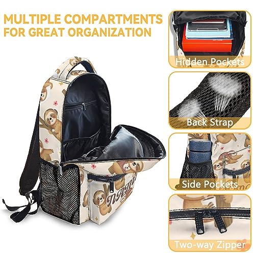 UNIKITTY Personalized Sloth Backpack with Lunch Box, Set of 3 School Backpacks Matching Combo, Cute Brown Bookbag and Pencil Case Bundle