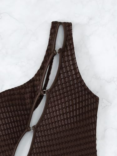 SKAYS Women's One Piece One Shoulder Swimsuit with Cutout Halter Design High Waisted Sexy Tummy Control Bathing Suit