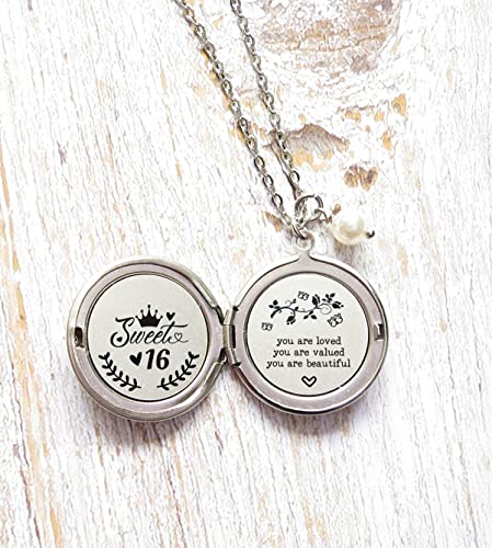 in-demand ! Sweet 16 Birthday Hidden Message Locket Necklace Encouragement 16 Year Old Birthday Gifts for Daughter Grandgaughter Niece