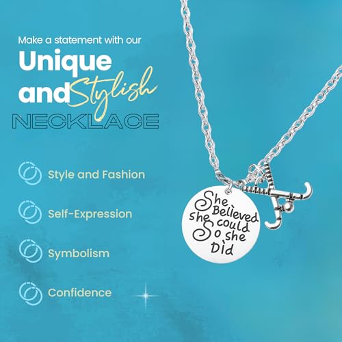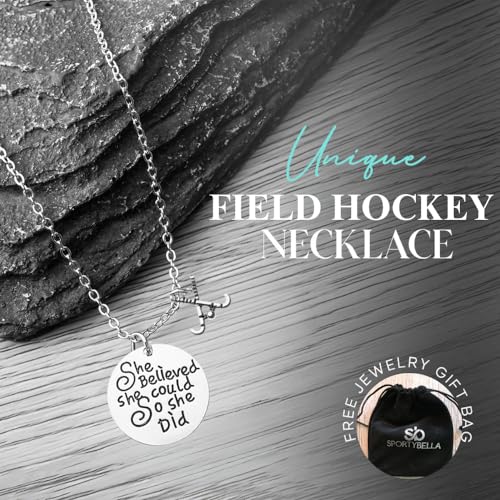 Why Choose She Believed She Could So She Did Field Hockey Necklace • Engraved Stainless Steel Pendant with Stick Charm • Inspirational Jewelry Gift for Players, Coaches & Teams?