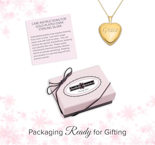 Sterling Silver or 14K Gold-Plated Engraved Heart Locket Necklace for Little Girls, Teens, or Women