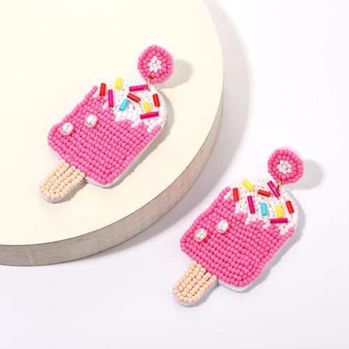 Beaded Dangle Earrings Summer Earrings Handmade Bead Ice Cream Earrings Bohemia Statement Drop Earrings Summer Decoration Beach Errings Hawaii Holiday Fashion Jewelry Gift