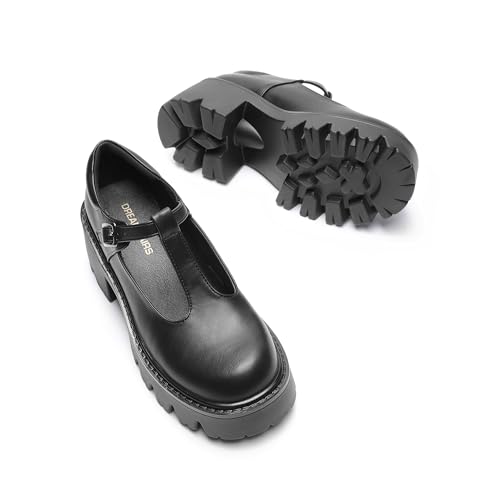 Sole material: Faux LeatherOuter material: Faux LeatherClosure type: BuckleWater resistance level: Not Water ResistantY2K-Inspired Design: These Mary Janes for women feature a retro round toe and classic T-strap design that blends early 2000s energy with a latest twist, where sweet meets rebellion.Leg-Elongating Magic: Get that leggy look with these platform dress shoes. The 2.56-inch heel paired with a 1.18-inch platform adds subtle height while keeping your stride balanced and confident.Lightweight Lug Sole: Designed with a PU outsole with deep lugs, these low-heel chunky pumps cushion every step and make long walks a breeze, breaking the stereotype of heavy platforms.Premium Material: Designed with a shape-holding PU upper and soft PU lining that gently hugs your feet, these Y2K-style pumps provide both durability and all-day comfort without pinching or pressure.Versatile Chic: Whether youβre commuting, heading to class, or going out with friends, these Mary Janes are made to match your daily mood. From retro skirts to wide-leg denim, they elevate any look with effortless flair. Perfect for everyday use. excellent materials and excellent craftsmanship ensure long-lasting durability.