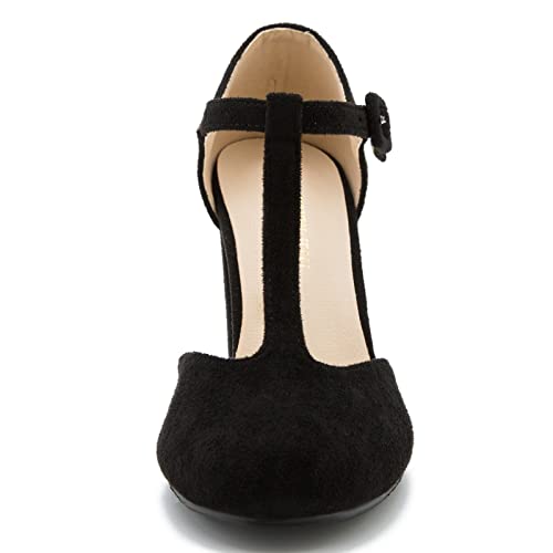 • Comfort Women retro Heel Pumps Closed Round Toe featuring an in-step T strap to keep your feet secure for every walk, with a cushioned insole platform and a sturdy block heel to support every move you make.