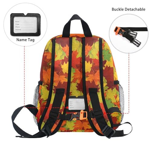 Autumn Leaves Orange Red Toddler Backpack for Girls Boys, Small Travel Backpack with Name Tag Kids School Backpacks, 3-8 Years