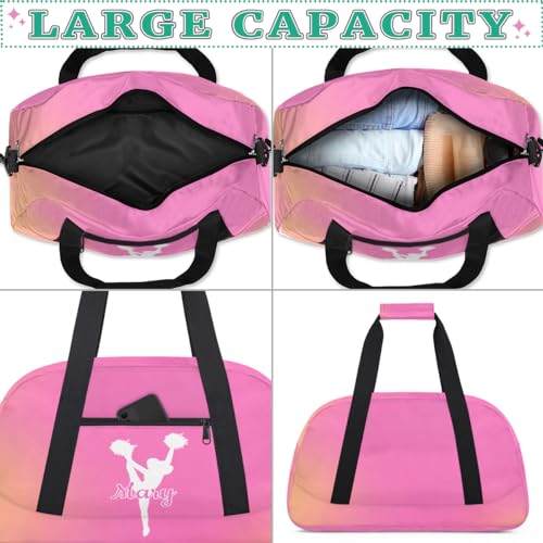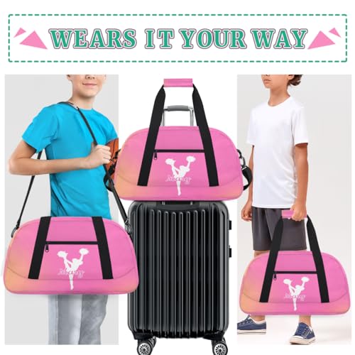 Personalized Cheer Bag Girl Sport Duffel Bag, Custom Kids Gym Bag, Customize Travel Duffle Bag with Name, Overnight Weekender Bags,Orange Pink Gradient, Cheerleading Gifts