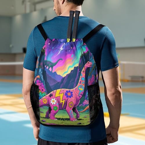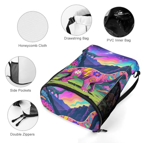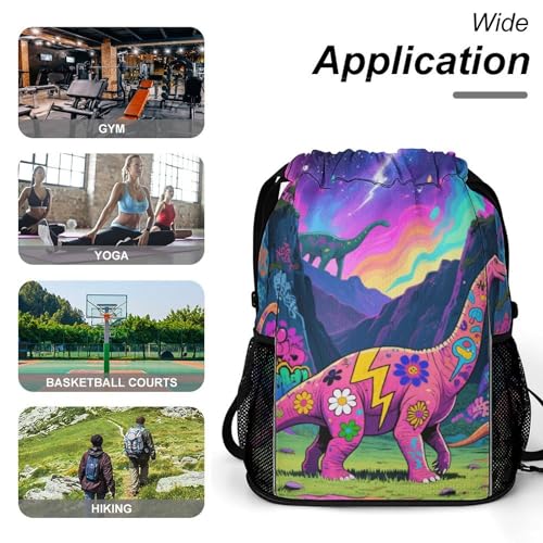 Small Gym Bag Graffiti Dinosaur Printed Drawstring Gym Bag for Men Lightweight Waterproof Drawstring Backpack for Women with Shoe Compartment for Travel Tourism Work And Fitness