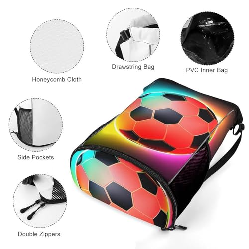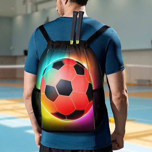 Men's Large Capacity Football Ball Fire Soccer Drawstring Backpack, Waterproof Pull String Sport Bag for Hiking Travel Gym Beach Swim