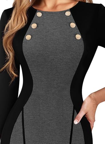 VFSHOW Womens Business Casual Office Work Buttons 3/4 Sleeve Colorblock Cocktail Party Fitted Pencil Sheath Dress